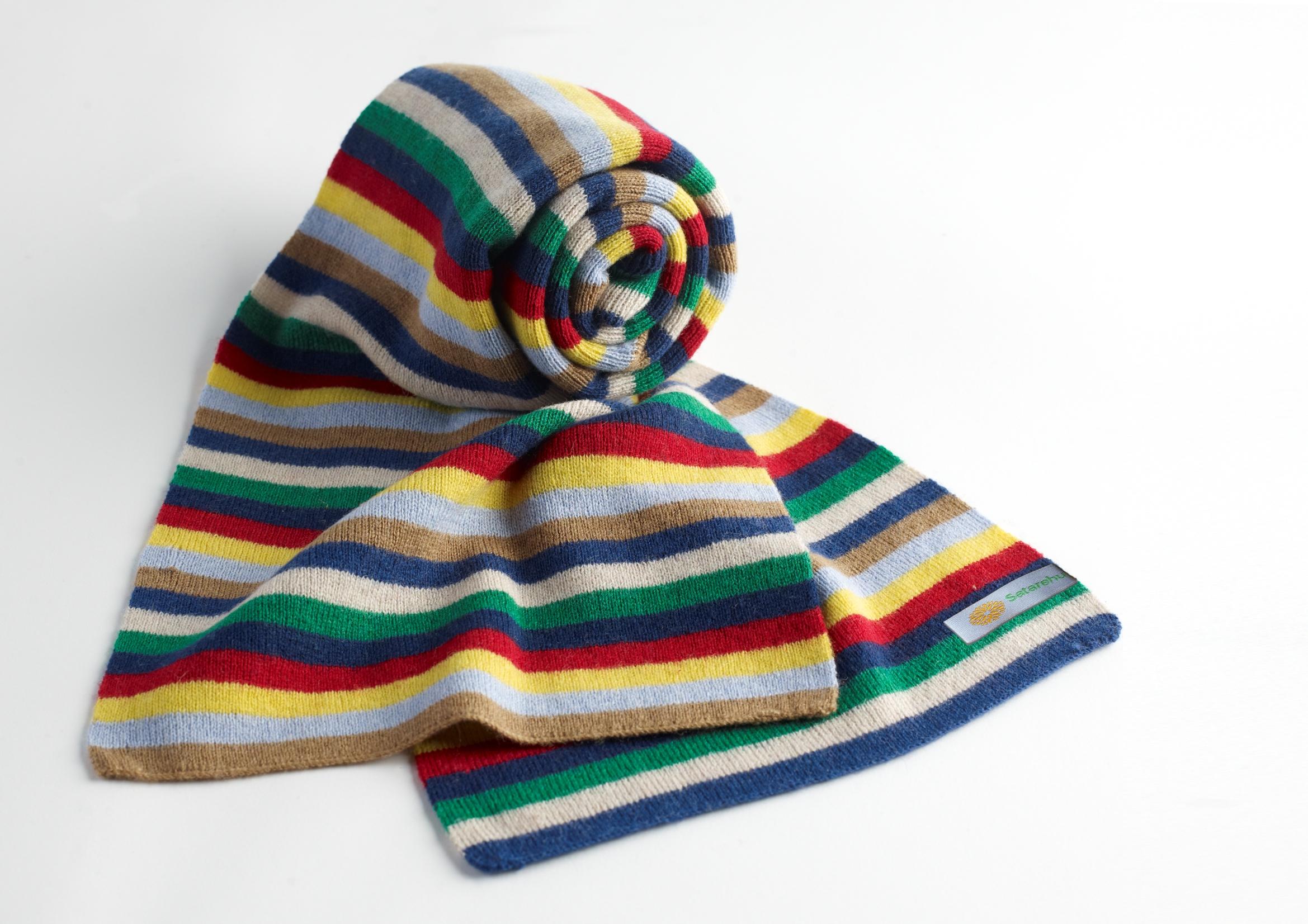 Tørklæder i logofarver til profilbeklædning.